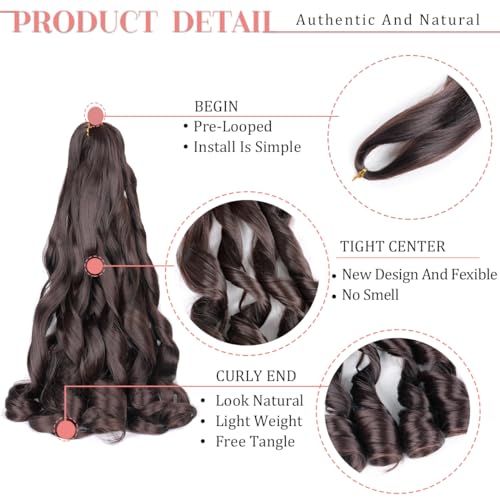 French Curly Braiding Hair,#4 Brown Synthetic Bouncy Braiding Hair 75g/Pack Crochet Hair Extensions 24Inch 8Pack French Curl Braiding Hair Extensions