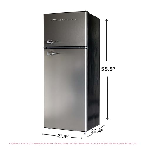 Frigidaire, 2 Door Apartment Size Refrigerator/Freezer Combo, 7.5 cu ft, Platinum Series, Stainless, 23″ D x 21.5″ W x 55.5″ H