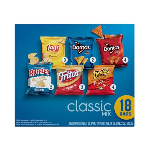 Specification: Frito-Lay Snacks Classic Mix Chips Variety Pack, Doritos, Lay’s Ruffles, Cheetos, Fritos, 18 Count(Pack of 1) (Assortment May Vary)