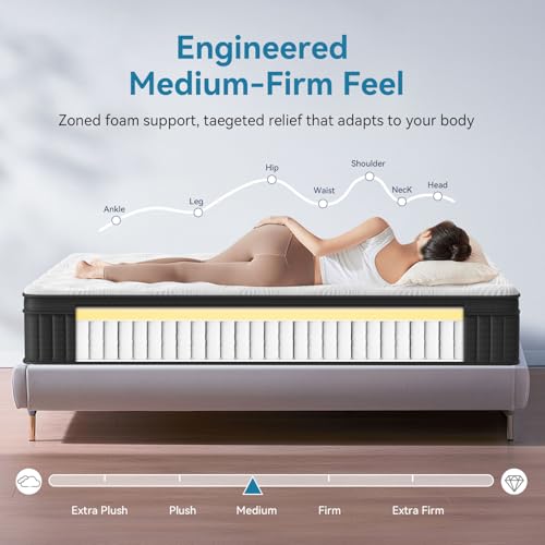 ✅ Medium Firm with Ergonomic Support: The multi-layer foam and spring system of our 12 inch full mattresses is designed to alleviate pressure points and reduce back pain, helping you wake up feeling refreshed.