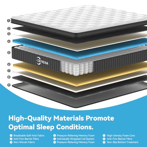 ✅ Innovative Hybrid Design: CRYREINA full mattress combines responsive pocket springs with contouring memory foam to deliver full-body support and superior pressure relief for truly restorative sleep.