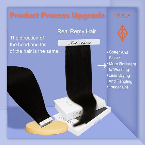 Specification: Full Shine Tape in Hair Extensions Human Hair 18Inch Remy Tape ins Human Hair Extensions Color 1 Jet Black Fashion Extension, Seamless Silky Straight Skin Weft 20Pcs 50G Add Length for Wedding