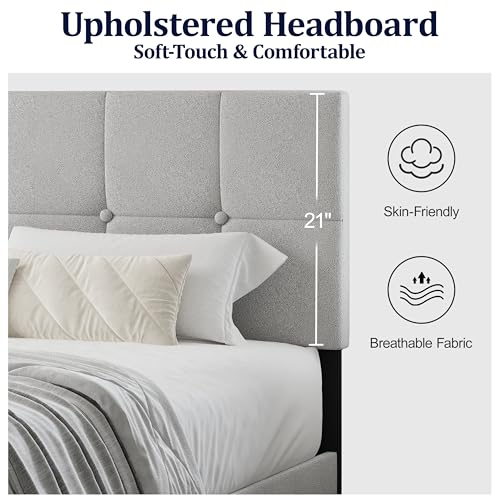 Full Size Bed Frame, Full Size Platform Bed Frame with Headboard, Fabric Upholstered Headboard, Sturdy Wood Slats, No Noiseless, No Springs Required, Easy to Assemble, Gray