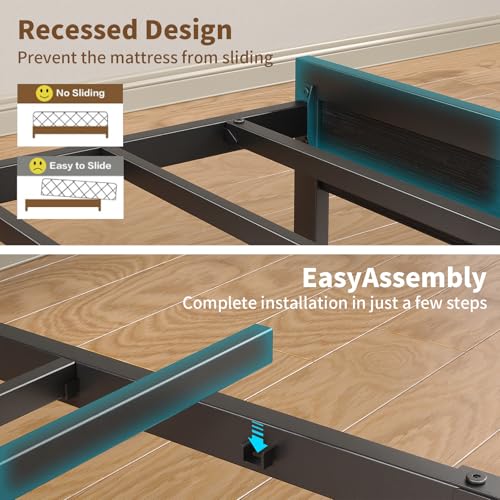 Industrial-Strength Metal Frame & Easy Assembly: Rest easy on a rock-solid, noise-free bed frame built with heavy-duty steel construction that reliably supports 1200 lbs. Our straightforward, tool-assisted assembly comes with all tools and clear instructions for quick setup. The sturdy frame and anti-slip design ensure lasting stability.