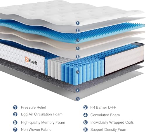 【Motion Isolation, Uninterrupted Sleep】 Fyaslt full mattress features hundreds of individually pocketed coil springs, each providing personalized support from head to toe and tending to reduce noise and isolate motion when you move, Effectively avoid movement interference between partners and create a comfortable sleeping environment. Enjoy a quiet, undisturbed sleep with this hybrid memory foam mattress.