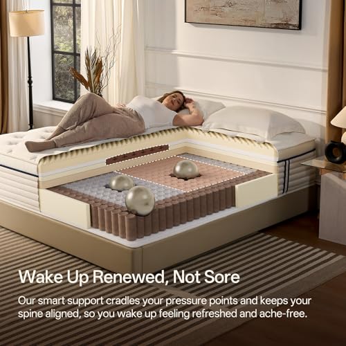 【Targeted Support & Pressure Relief】Equipped with hundreds of individually wrapped pocket coils, it delivers targeted support that adapts to your body’s curves. This design eases pressure on all body parts, maintains proper spinal alignment, and ensures full-body comfort for any sleeping position.