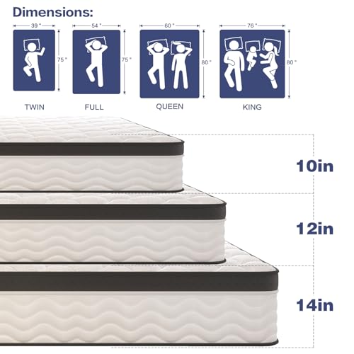 Full Size Mattress,12 Inch Full Mattress, Hybrid Mattresses for Back Pain Relief,Pressure Relief & Motion Isolation,CertiPUR-US Certified,Medium Firm,54″x75″