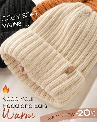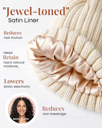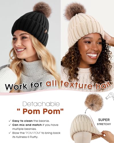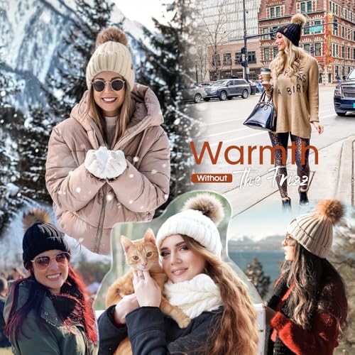 Specification: FURTALK Womens Winter Beanie Hat Satin Lined Faux Fur Pom Pom Beanies Hat for Women Winter Warm Knit Hats