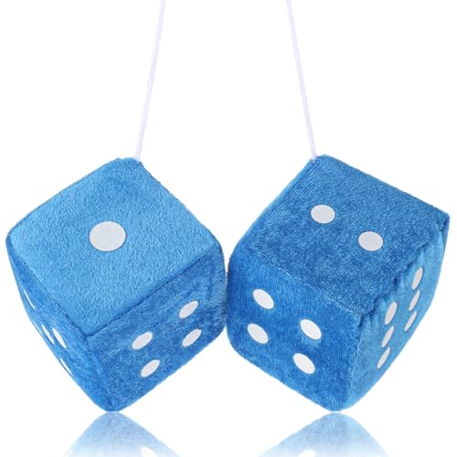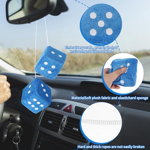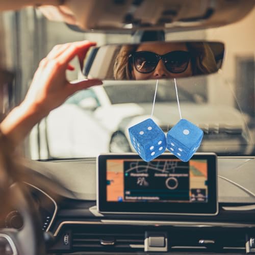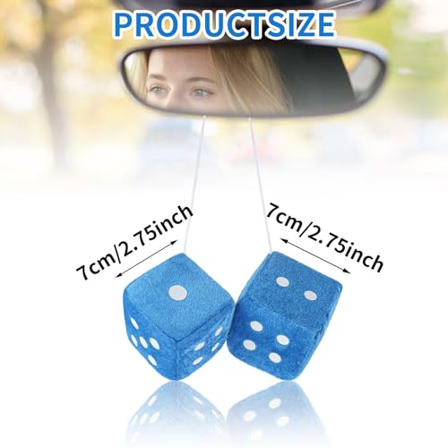 Specification: Fuzzy Dice for Rear View Mirror, Blue Fuzzy Dice for Car Mirror, 2.75inch Pair of Plush Retro Square Hanging Dice with White Dots Cute Car Decoration Ornament Accessories