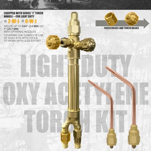 Light Duty Oxy Acetylene Cutting Kit: Equipped with Series “J” Torch Handle—for Light Duty. Welds up to 5/64″ (2.0 mm) or 1″ (25.7 mm) with optional nozzles