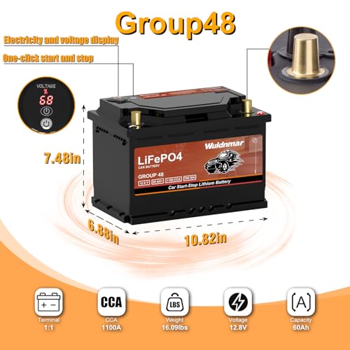 Specification: G48 Lithium Automotive Battery – 12.8V 60Ah 1100CCA Ultra-Durable, High Cranking Amps, and Quick Charge Time | Reliable for Any Vehicle