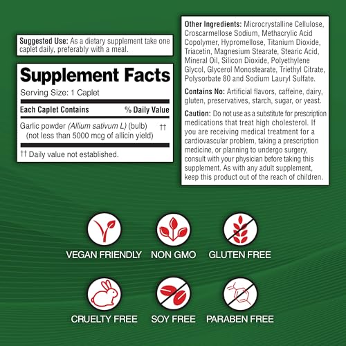 Specification: Garlique Garlic Extract Supplement, Healthy Cholesterol Formula, Odorless & Vegan, 60 Caplets