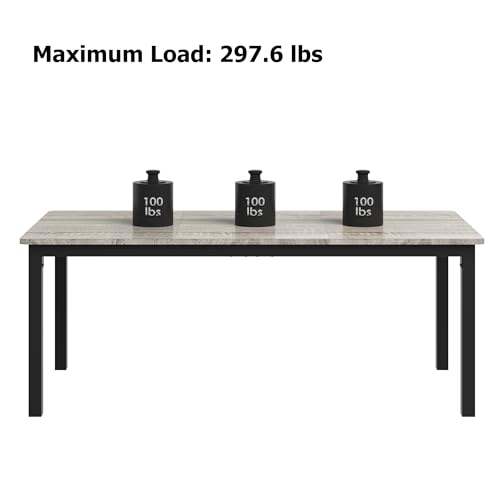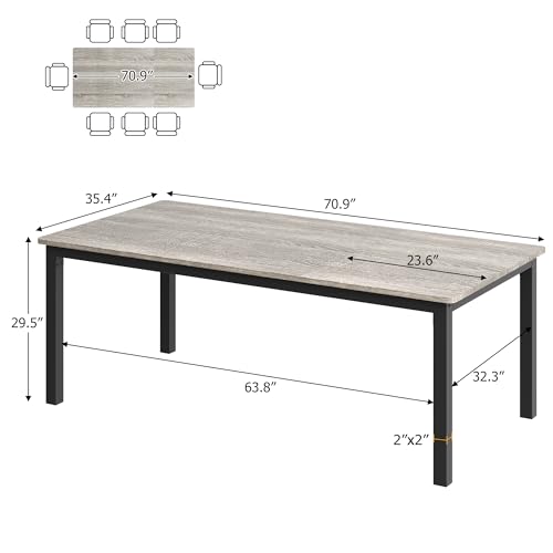 Specification: GarveeHome 70.8 in Industrial Dining Table for 6, Wooden Long Dinner Table with Mortise Tenon Design, Kitchen Table with Sturdy Metal Legs, for Dining Room Home Office Living Room, Grey