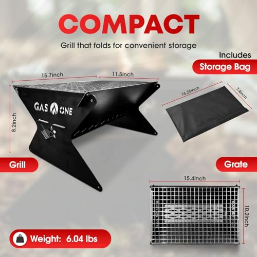 GasOne 15” Portable Charcoal Grill – Foldable BBQ Grill – Camping Grills for Backyard, Bonfire, Patio – Heavy-Duty Portable Fire Pit – Camp Cooking Gear