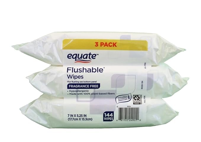 Specification: Generic Equate Fragrance Free Hypoallergenic Flushable Wipes,144 Count 3 Pack