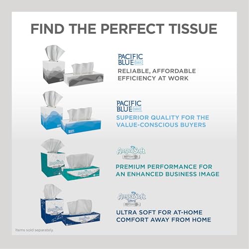 Specification: Georgia-Pacific Pacific Blue Basic 2-Ply Facial Tissue (47410), 100 Sheets Per Box, 30 Flat Boxes Per Bulk Case