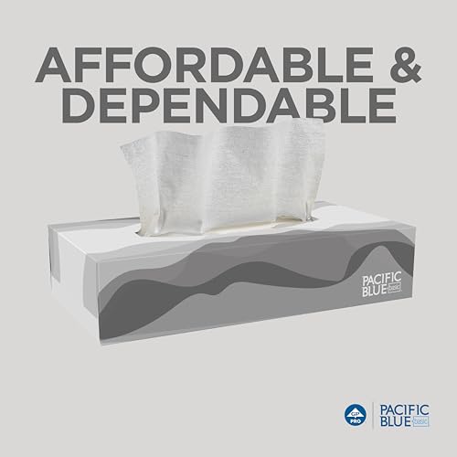 Georgia-Pacific Pacific Blue Basic 2-Ply Facial Tissue (47410), 100 Sheets Per Box, 30 Flat Boxes Per Bulk Case