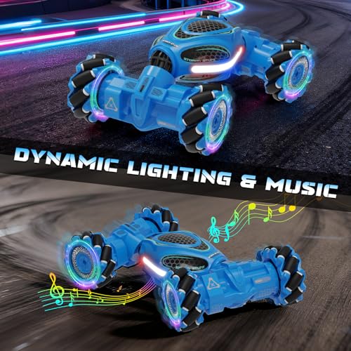 Gesture Sensing RC Stunt Car, Remote Control 2.4GHz 4WD Hand Controlled Car Toys for Boys and Girls Ages 6-12, 360° Rotating Drift RC Cars with Lights and Music, Ideal Birthday and Xmas Gift