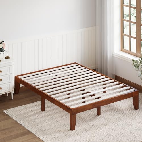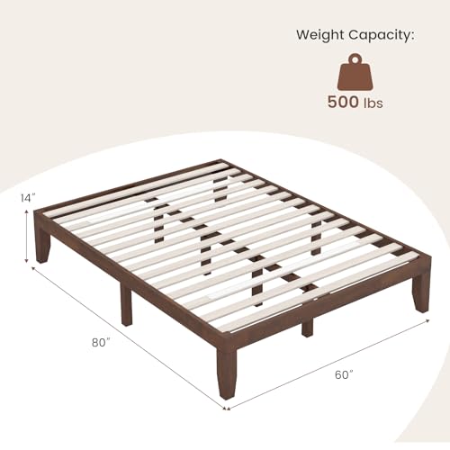 Specification: Giantex 14 Inch Queen Wood Platform Bed Frame, Minimalist Style Mattress Foundation with Solid Rubber Wood, Heavy Duty Slat Support, Without Headboard, Easy Assembly, No Box Spring Needed, Walnut