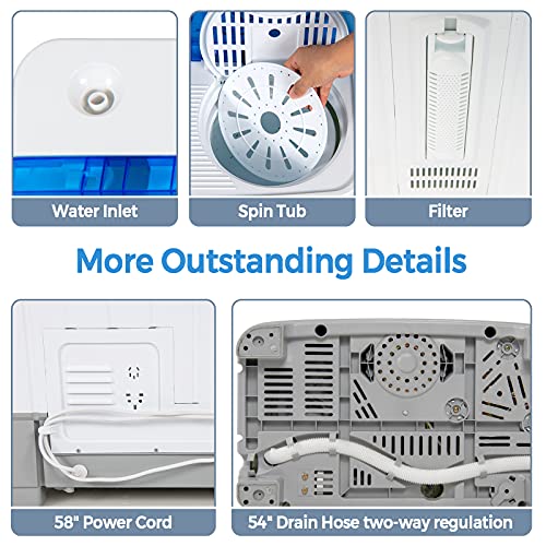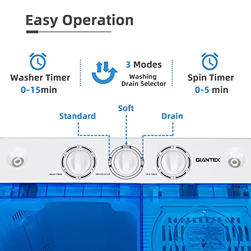 Specification: Giantex Portable Washing Machine, 2 in 1 Laundry Washer and Spinner Combo, 22lbs Capacity Twin Tub 13.2 lbs Washing 8.8 lbs Spinning, w/Timer Control, Built-in Drain Pump, Dorm Apartment