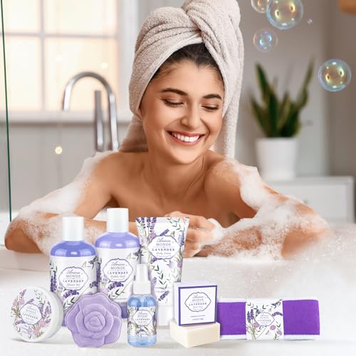 Gift Baskets for Women, Lavender Gift Sets for Women Self Care Spa Gift Basket Includes Body Lotion, Shower Gel, Bubble Bath, Relaxing Gifts For Her, Mom, Sister, Birthday & Christmas Gifts