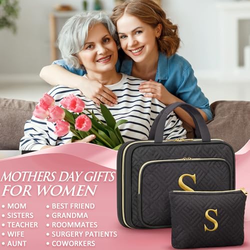 Gifts for Women, Initial Toiletry Makeup Bag Hanging Cosmetic Organizer with Embroidery Letter Personalized Nurse Teacher Appreciation Gift Birthday Christmas Gifts for Mom Sister Wife Friend Auntie