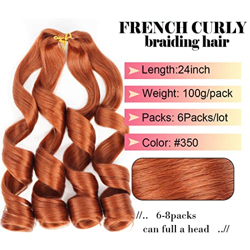 Ginger French Curl Braiding Hair 24 Inch Soft Ginger Braiding Hair Pre Stretched Loose Wave Bouncy 100g/pack Yaki Crochet Hair for Black Women Hair Extensions for Braids (#350)