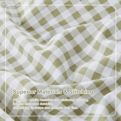 Gingham Queen Sheet Set, Lightweight Super Soft Brushed Microfiber Plaid Bed Sheets with 16″ Deep Pocket, 4 Piece Ruffle Farmhouse Bedroom Decor, Sage Green