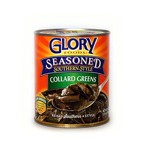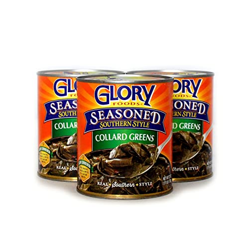 Glory Collard Greens slow simmered with onions, garlic, and spices in a savory broth, Southern Style. 3-27oz cans