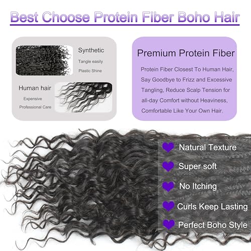 【What Is Protein Fiber】: Protein Fiber Closest To Human Hair, Say Goodbye to Frizz and Excessive Tangling, Very Soft, Very Smooth, No Plastic, No Itching, Perfect Protective Boho Style Curly Crochet Hair for Women.