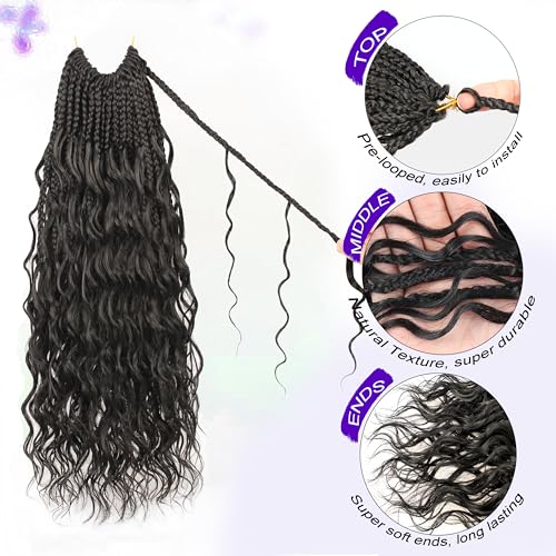 【All-Day Comfort】: The Goddess Boho Box Braids Is Very Light, Not Allergic Or Itchy. These pre-looped Crochet Braids Reduce Scalp Tension for all-day Comfort without Heaviness, Comfortable Like Your Own Hair.