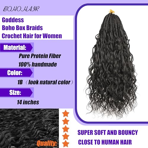 Specification: Goddess Box Braids Crochet Hair 14 inch Pure Protein Fiber Close to Human Hair 8 packs Boho Crochet Braids for Black Women Pre looped Bohemian Box Braid with Curly Ends Hair Extensions(14 inch, 1B)