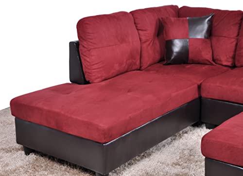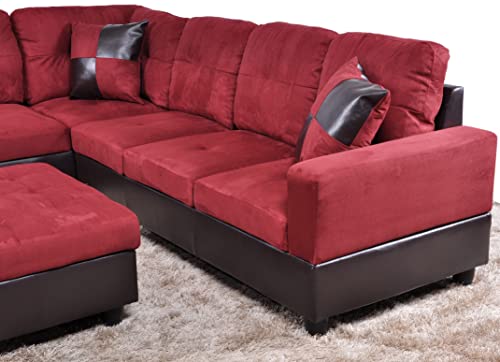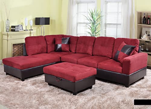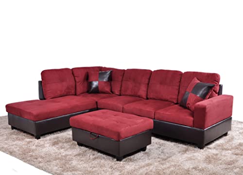 Specification: Golden Coast 3 PCS Sectional Sofa Set, L-Shaped Couch 103” W for Living Room, with Storage Ottoman and Matching Pillows (Left Hand Facing, Red), 32” H x 103.5” W x 74.5” D