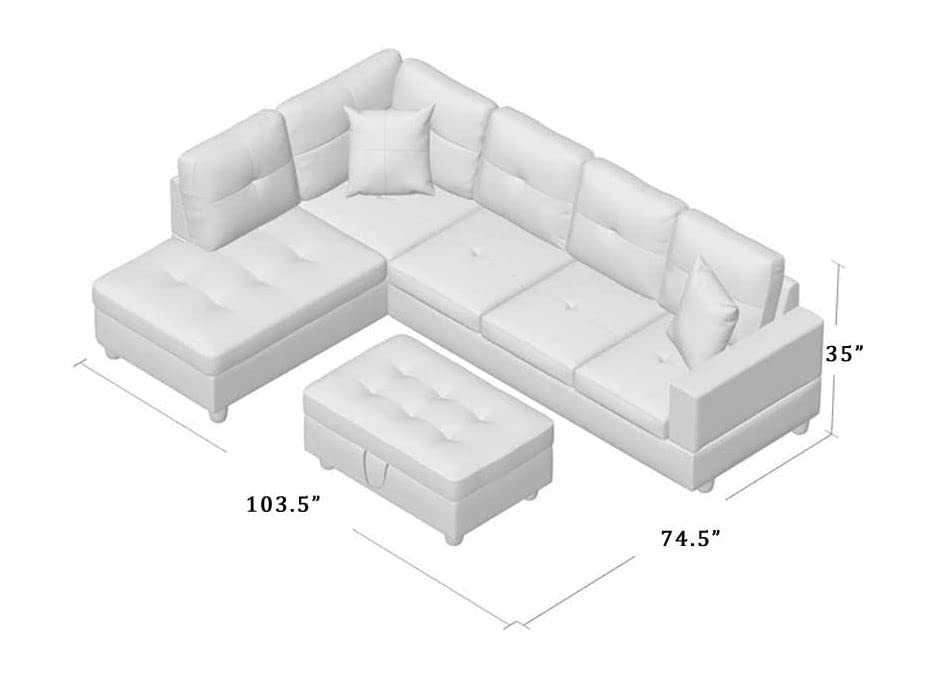 🆕〖SPACE SAVING DESIGN〗Overall dimension: 103.5″W x 74.5″D x 35″H. This sectional couch set is compact enough to fit into your living room, apartment, and more while offering ample seating space. All hardware are located in a compartment at the bottom of the sofa.