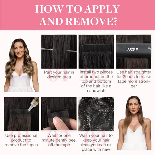 Specification: GOO GOO Tape in Hair Extensions Human Hair, 4/27/4 Balayage Chocolate Brown to Caramel Blonde, 18inch 100g 40pcs, Skin Weft Seamless Invisible, Silky Straight with Thick Ends, Remy Human Hair