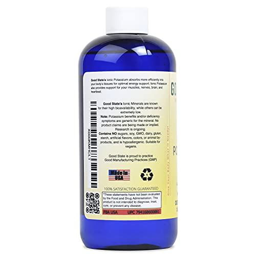 HIGH ABSORPTION: Good State’s liquid potassium supplement, with its ionic mineral properties, facilitates effortless absorption and utilization by the body. By reducing the energy required for particle movement, our potassium drops swiftly enter the bloodstream upon ingestion.