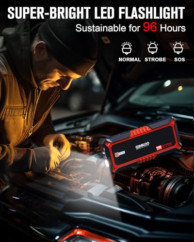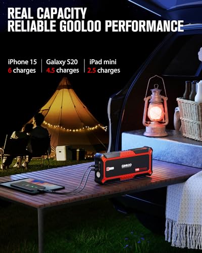 Specification: GOOLOO GP4000 4000A Peak Car Battery Jump Starter, Portable Battery Booster for Up to All Gas or 10L Diesel Engine, SuperSafe 12V Lithium Jump Box Power Pack with Jumper Cable,Red