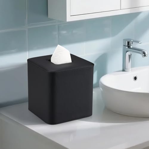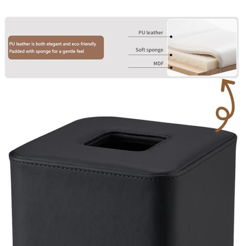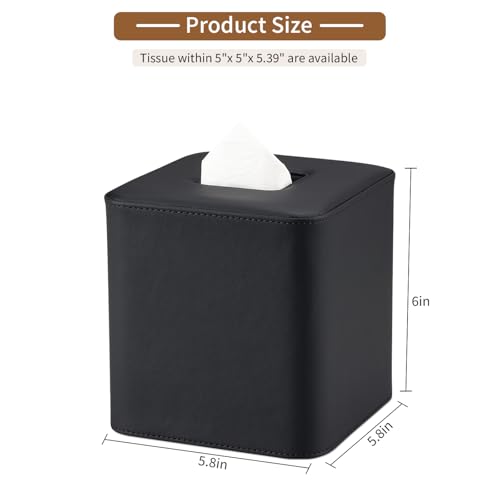 Specification: GORESE Leather Tissue Box Cover Square Tissue Box Holder for Kleenexs, Tissue Cover for Cube Box Tissues, Kleenexs Box Holder for Bedroom, Living Room, Bathroom, Black