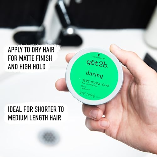 Specification: got2b Daring Texturizing Clay, 2 Fl Oz, Matte Finish and High Hold Styling Hair Clay For Men and Women, Non-Greasy, Non-Sticky Hair Texturizer for Short to Medium Hair