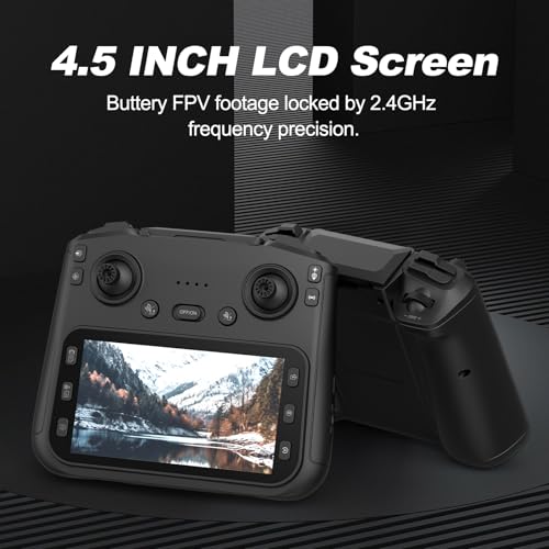 GPS Auto Return & Large Screen: This advanced GPS drone enables automatic return-home function when encountering low battery or signal loss. Equipped with a built-in 4.5-inch display, this FPV drone with screen offers real-time viewing directly from the remote control, making it ready to fly immediately for beginners and adults.