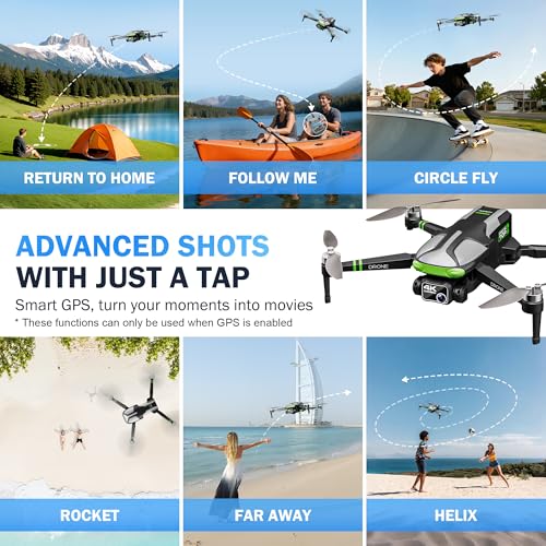 Smart GPS with Auto Return: Designed for pilots of all skill levels, this FPV drone offers precise positioning for smarter operation. Key functions include One-key Return, low-power auto return, GPS lock, and compass calibration. Easily execute creative shots like Rocket, Helix, Follow, and Circle Fly, enabling reliable performance in various environments