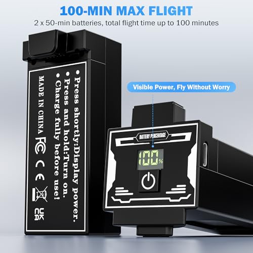100-Minute Extended Flight: Powered by 2 7.6V 3800mAh visible-power batteries, this drone delivers up to 100 minutes of total flight time. Supports USB-C fast charging for added convenience and uninterrupted fun. *Please ensure the drone is fully charged to 100% before each flight. Dedicated customer support is available for any inquiries
