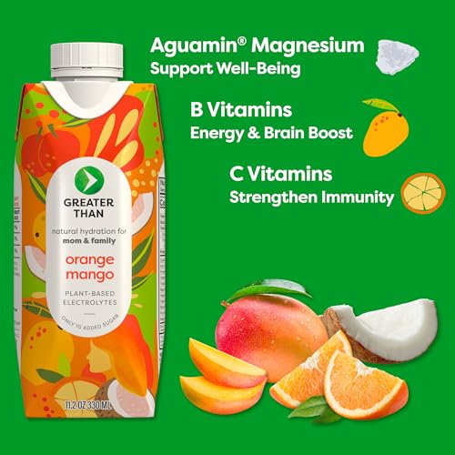 Greater Than Nutrient Hydration Beverage, Electrolyte Drink for Gut Health & Energy with Coconut Water, Vitamins, Gluten Free, Plant Based, Low Sugar, Orange Mango, 24 Pack