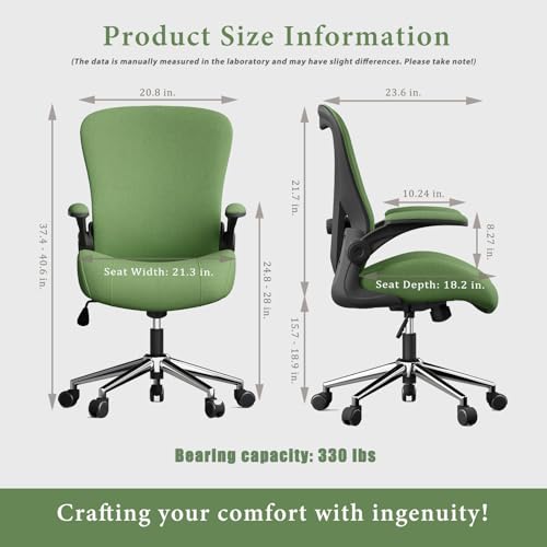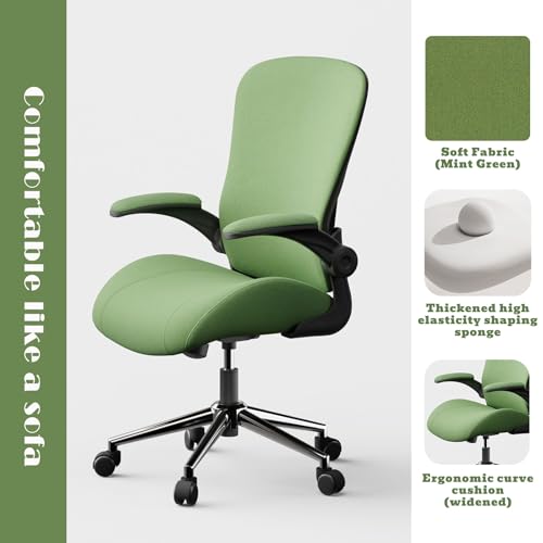 Specification: Green Ergonomic Office Desk Chair, Soft Fabric Thickened Curved seat Cushion with Adjustable Lumbar Support, Perfect Blend of Comfort and Good Looks, Ideal Chair for Home or Office, Green