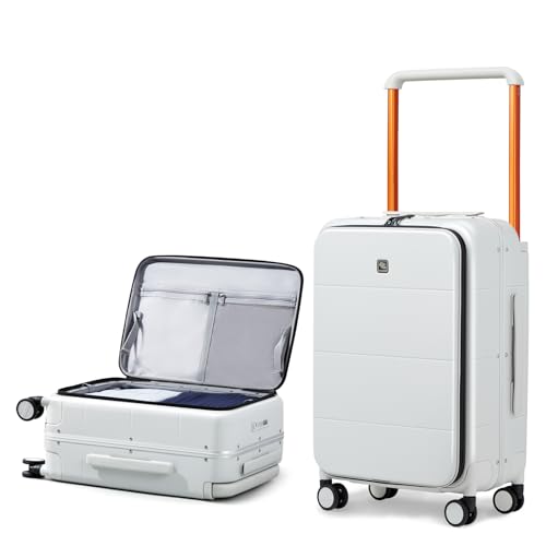 Hanke Top Opening 24 Inch Luggage with Spinner Wheels, Aluminum Frame All-PC Hard Shell Medium Suitcase, Trunk Wide Handle Luggage for Travel, TSA Checked-Medium (Smoke White, 69L)
