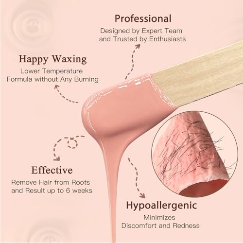 Gentle Formula for All Skin Types: Infused with natural ingredients, these hypoallergenic wax beads provide a soothing and irritation-free waxing experience, making them ideal even for sensitive skin. They grip hair firmly while minimizing discomfort and redness.