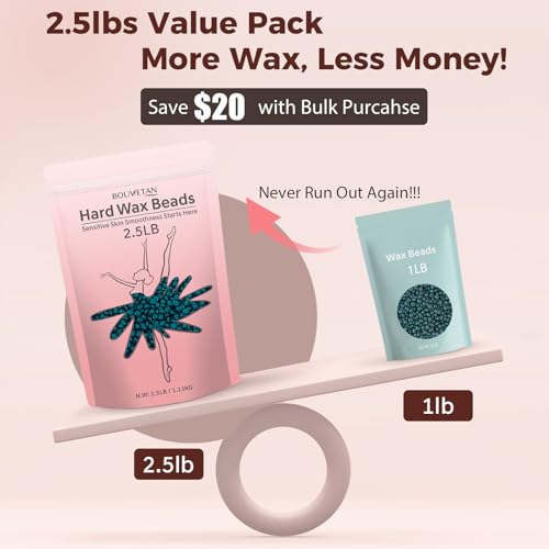 Cost-Effective Bulk Pacakge: This 2.5lbs hard wax beads is ideal for full-body or frequent waxing. With ample quantity, it ensures hair-free skin for larger areas or ongoing maintenance, offering a more economical and convenient solution for at-home or professional use than small package. Never run out and enjoy flawless results every time!