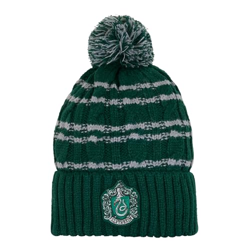 Specification: Harry Potter Slytherin Knitted Hat – Cuffed Beanie Hat with Embroidered Crest & Pom Pom – Green & Grey Warm Winter Accessory for Fans & Collectors – Adults and Teens