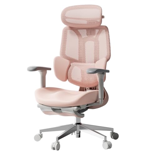 Hbada E3 Air Ergonomic Office Chair, Big and Tall Office Chair – with 3-Zone Dynamic Lumbar Support, 3D Adjustable Headrest, 4D Adjustable Armrests, Swivel, Pink(with Footrest)