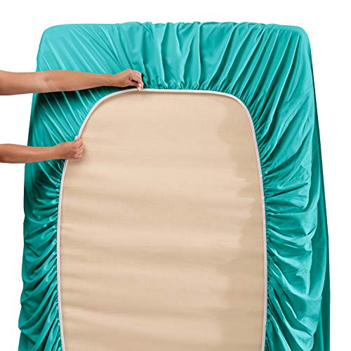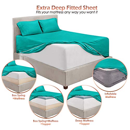 Hearth & Harbor Extra Deep Pocket Queen Sheets Sets – Fits Mattress 18-24 Inches Deep – Extra Deep Pocket Sheets – 6 Piece Queen Size – Teal